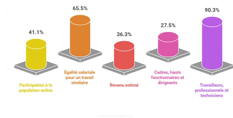 - Seulement 41% des femmes participent à la population active.